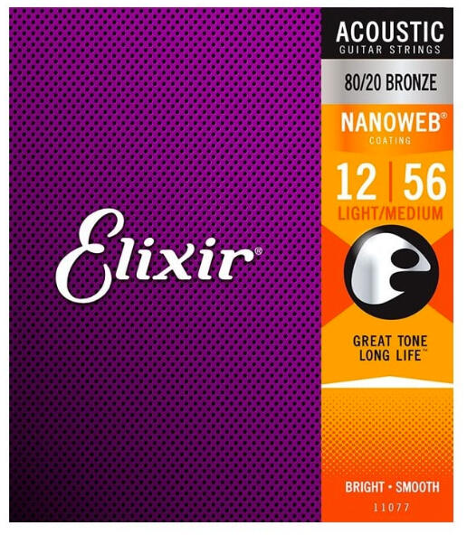 Elixir 11077 NanoWeb Light Acoustic 80/20 bronz 12-56