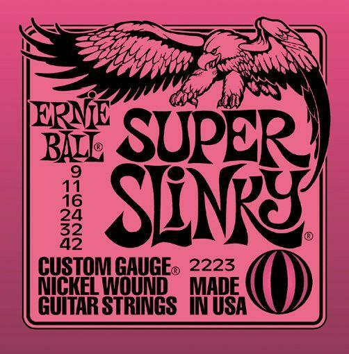 Az Ernie Ball Super Slinky húrokat olyan zenészek használják mint, Jimmy Page, Jeff Beck és Angus Young. Ezek a húrok a precíz gyártásnak köszönhetően tökéletes összetételűek, optimális játékérzetet nyújtanak és hosszú az élettartamuk. A Super Slinky sodort húrjai nickel bevonatú acélhúrok melyek egy hatszögletű acél vezetőszál köré vannak tekerve. A sima húrok vékony bevonatú karbon acélból készülnek, ezzel nyújtva a tökéletesen kiegyensúlyozott hangot a gitárodnak.